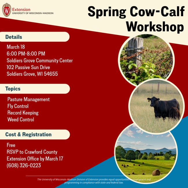 This event is free! Please RSVP to Crawford County Extension Office by March 17: 608-326-0223
